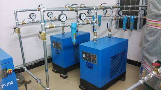 一、空压机系统设备的常见配置方式有以下三种: 1、空压机—储气罐---油水分离过滤器---除尘过滤器---除油过滤器---(后置用气设备)。 2、空压机--储气罐---油水分离过滤器---冷冻式干燥机---除尘过滤器---除油过滤器---(后置用气设备)。 3、空压机--储气罐---油水分离过滤器---冷冻式干燥机---除油过滤器---吸附式干燥机---除尘过滤器-